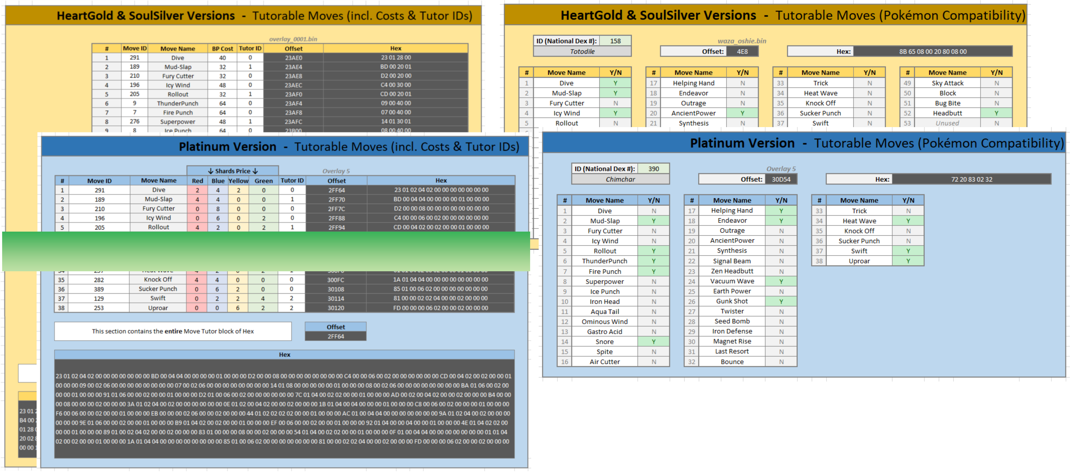 This page is a full guide on making changes to moves and their related data in Generation IV Pokémon games (moves, move effects, animations, learnsets, TMs, move tutors). This guide focusses on editing, re-organising and replacing existing data. There are methods to add new moves (without replacing any existing moves) to Generation IV Pokémon games, but these are significantly involved, and require moving data/tables.
